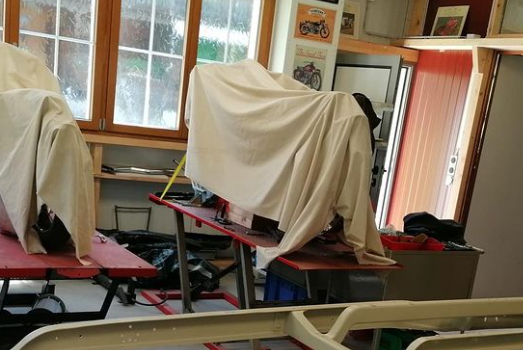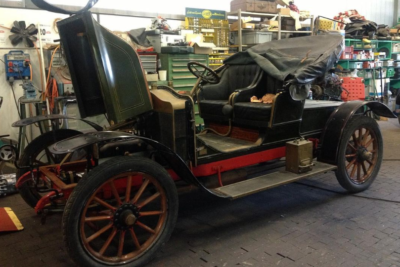 Anfang oder mitte der 60 Jahre, hatte mein Ex-Mann mit einem Freund in einer alten Scheune auf einem Landgut eines Schlosses, im Elsass Frankreich, dieses Automobil unter einem Heuhaufen entdeckt. Das Auto war ein totaler Rosthaufen, man hat ihn restaurieren und reparieren lassen, ein neues Verdeck, Lederpolster, neue Kurbelwelle, neuer Farbanstrich, kurzgesagt, es wurde total überholt.