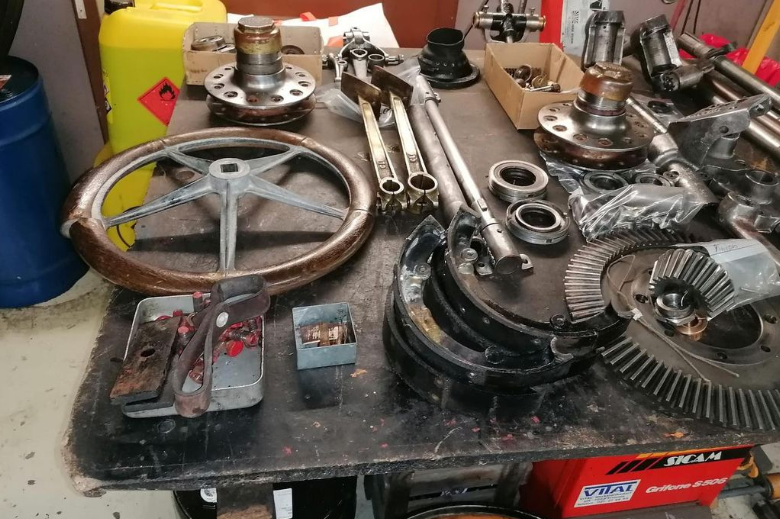 Zuerst musste der Oldtimer fachgerecht auseinander gebaut werden um die Funktionsfähigkeit zu testen.